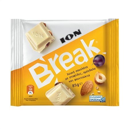 Break Σοκολάτα Λευκή Με Σταφίδα Αμύγδαλο Φουντούκι 85gr