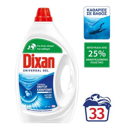 Dixan Απορρυπαντικό Πλυντηρίου Ρούχων Gel Φρεσκάδα Ωκεανού 1650ml