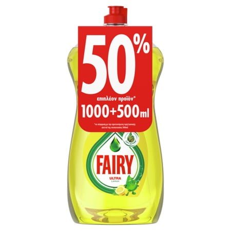 Fairy υγρό πιάτων για πλύσιμο στο χέρι λεμόνι 1000ml+500ml
