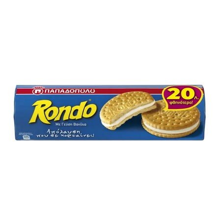 Παπαδοπούλου μπισκότα γεμιστά Βανίλια Rondo 250gr