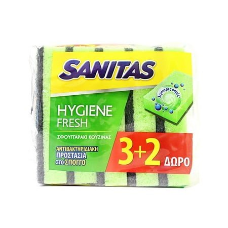 Sanitas σφουγγαράκι κουζίνας αντιβακτηριδιακό – (3+2)